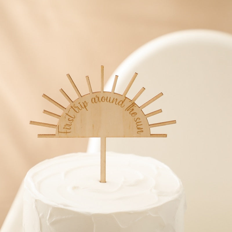 - Wood "One" Sun cake topper