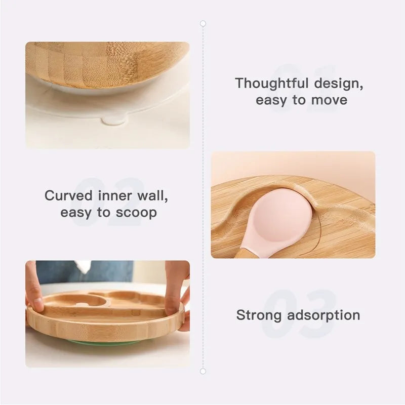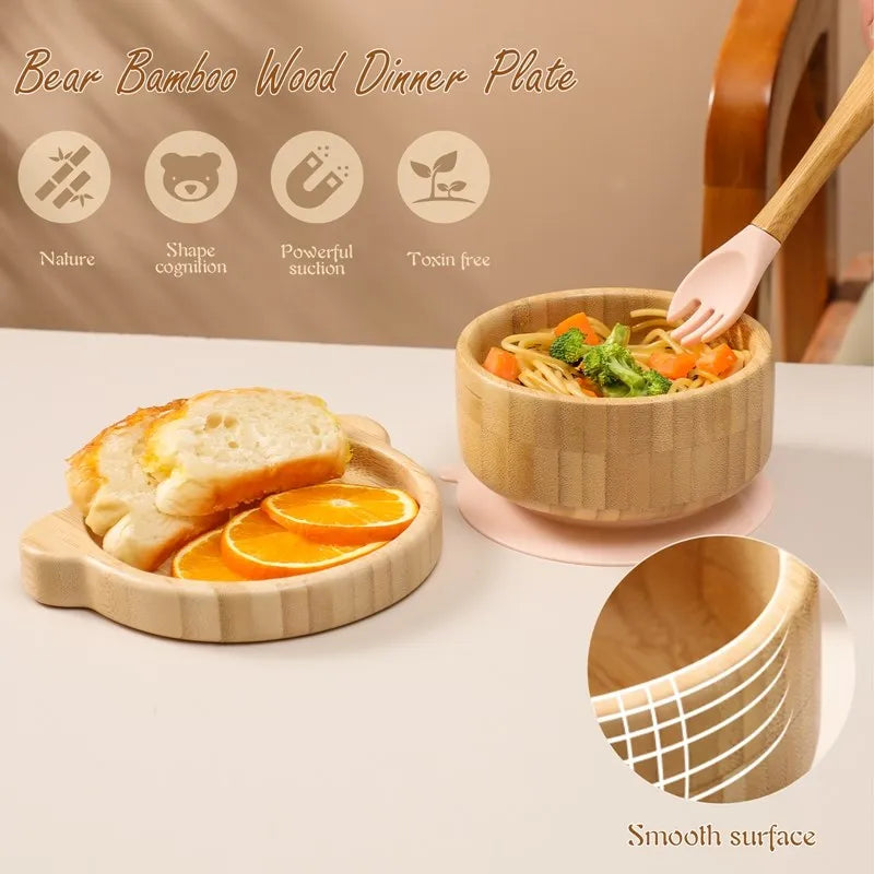 Mealtime just got easier (and cuter). This 7-piece bamboo-style tableware set is thoughtfully designed for busy parents and independent little eaters. Each set includes: