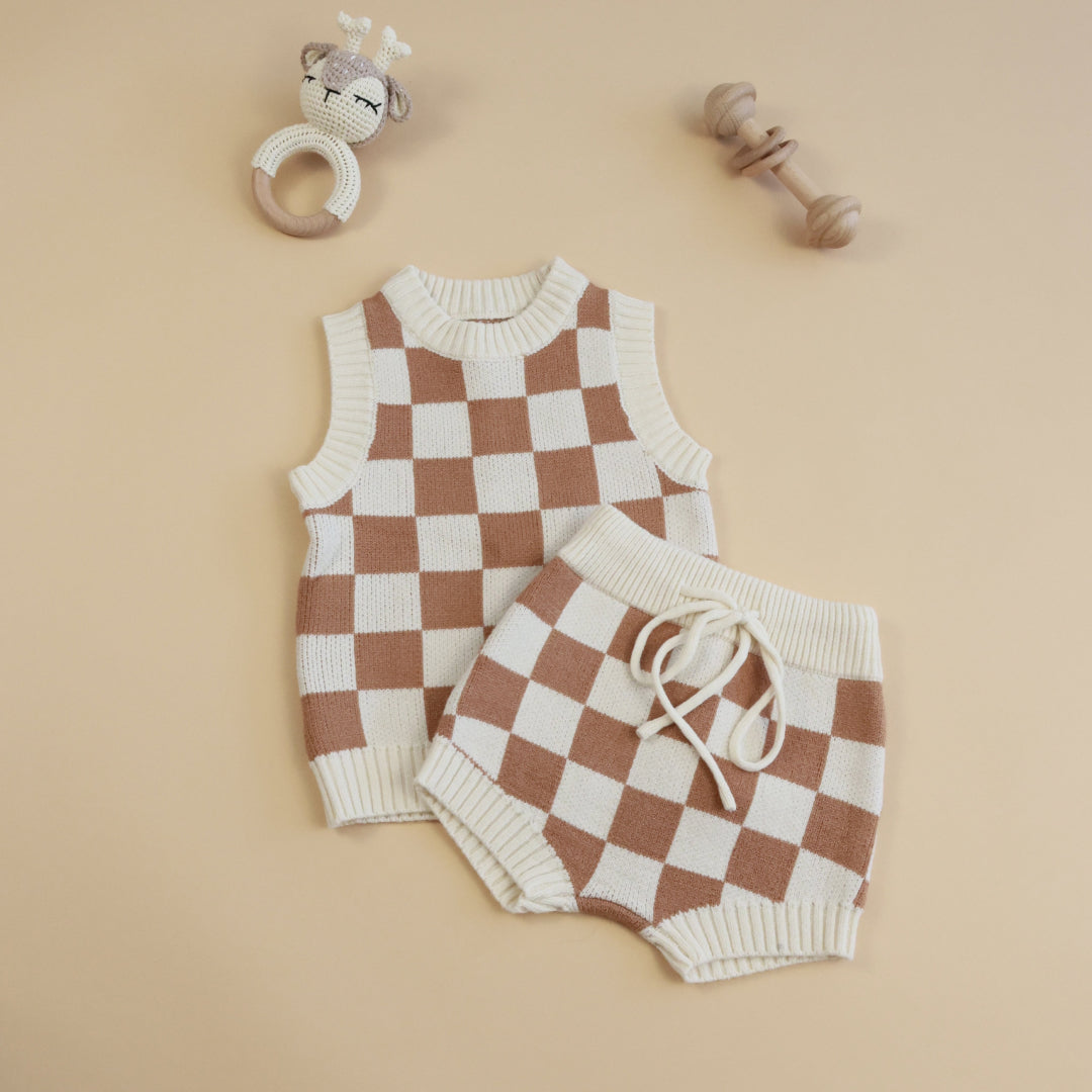This soft knit set is the perfect checkered combo for those warmer weather days.