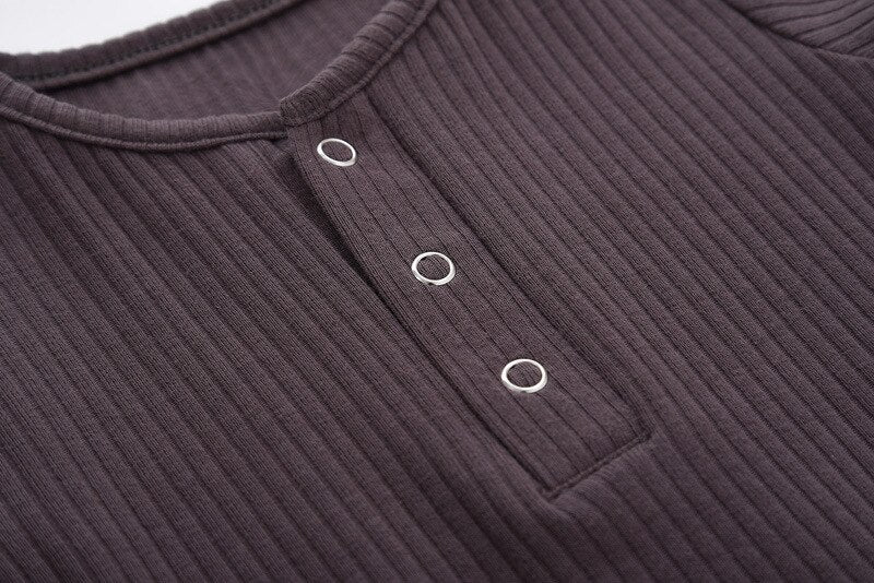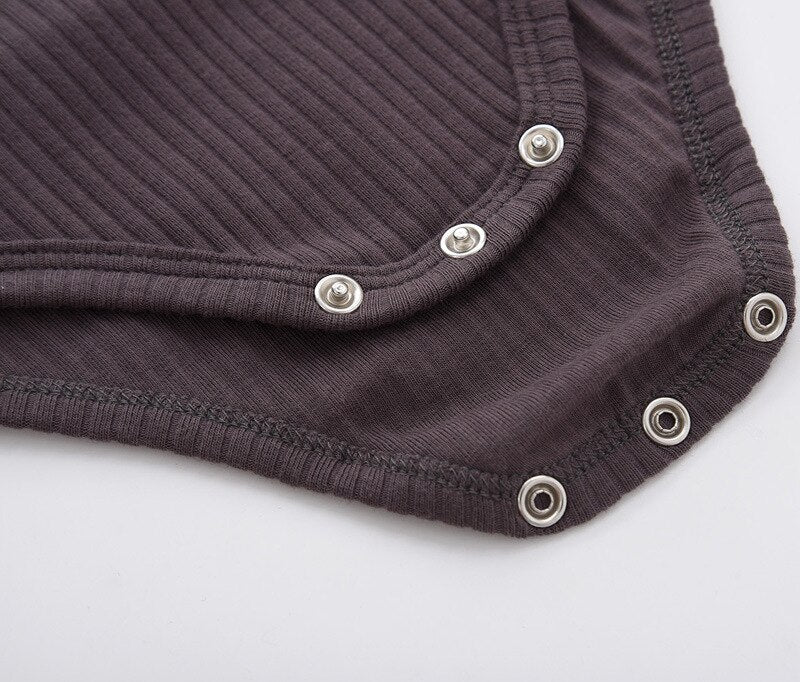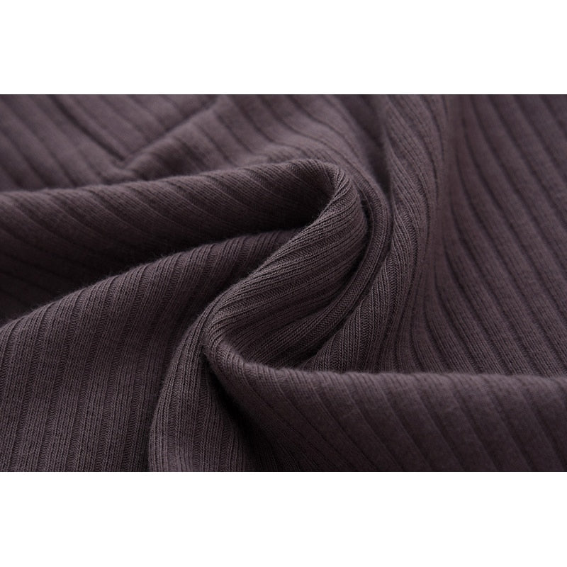 Classic Ribbed Knit Romper Tee in Brown