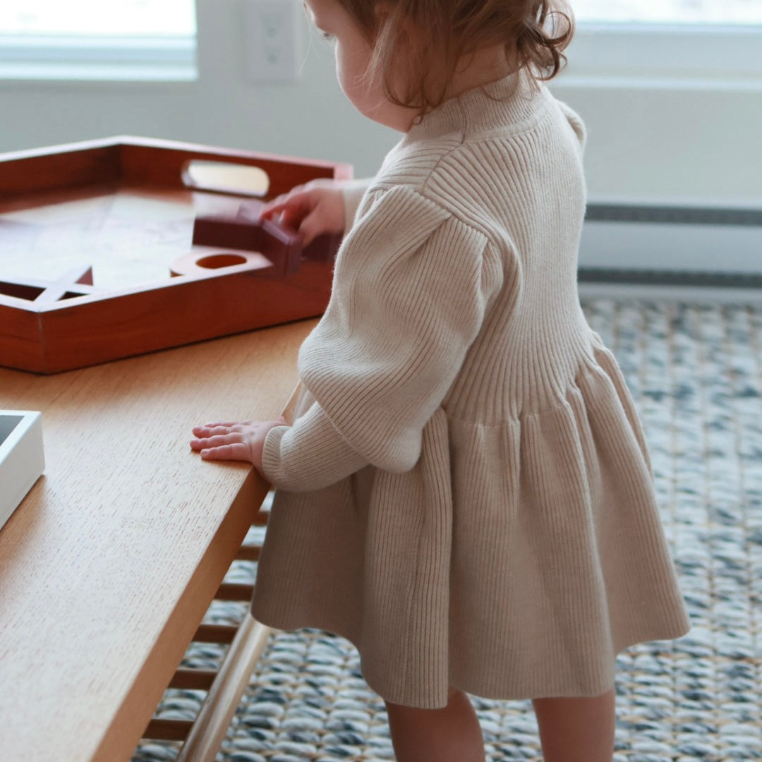 Puff Sleeve Sweater Dress in Beige